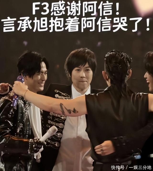看得出几人的合作很契合,其他三人也是对阿信充满感谢,毕竟缺了一个也就不算是F4了,没有朱孝天的舞台依旧很有氛围, 几个人一起拥抱的画面也是感动了很多人,台上的人红了眼眶,台下的人又何尝不是呢!